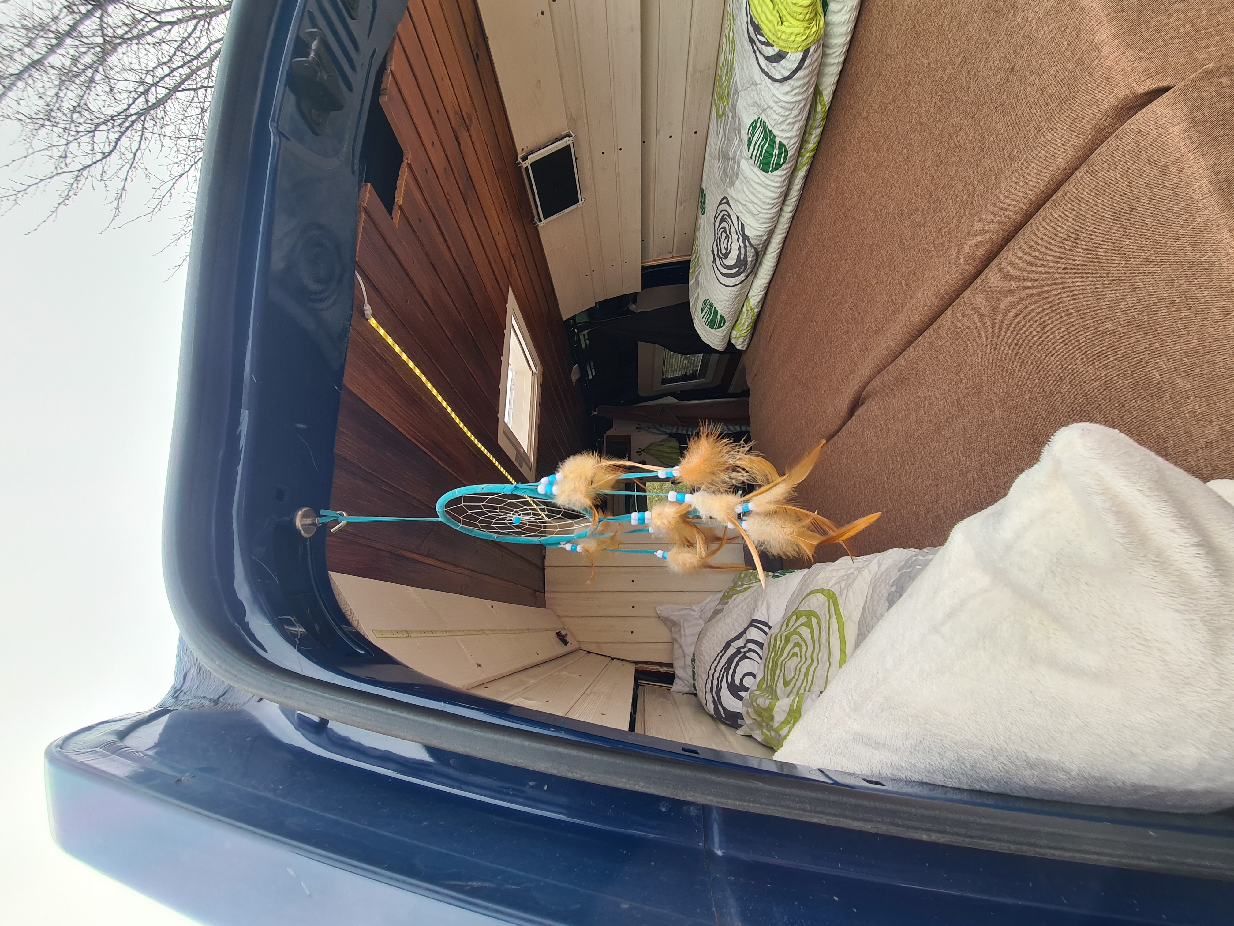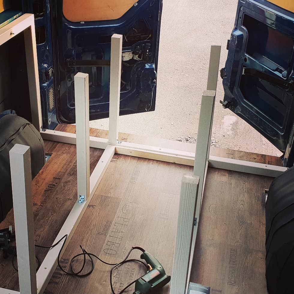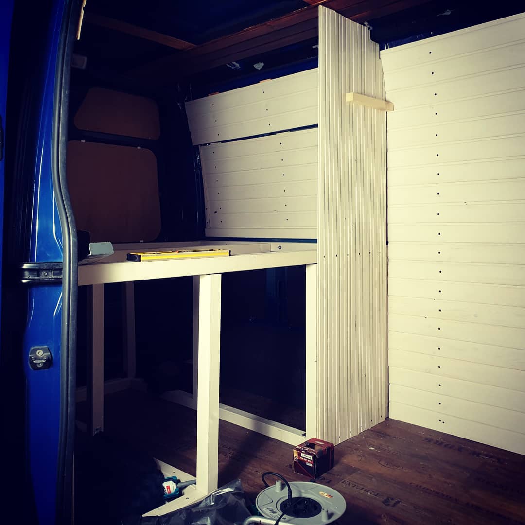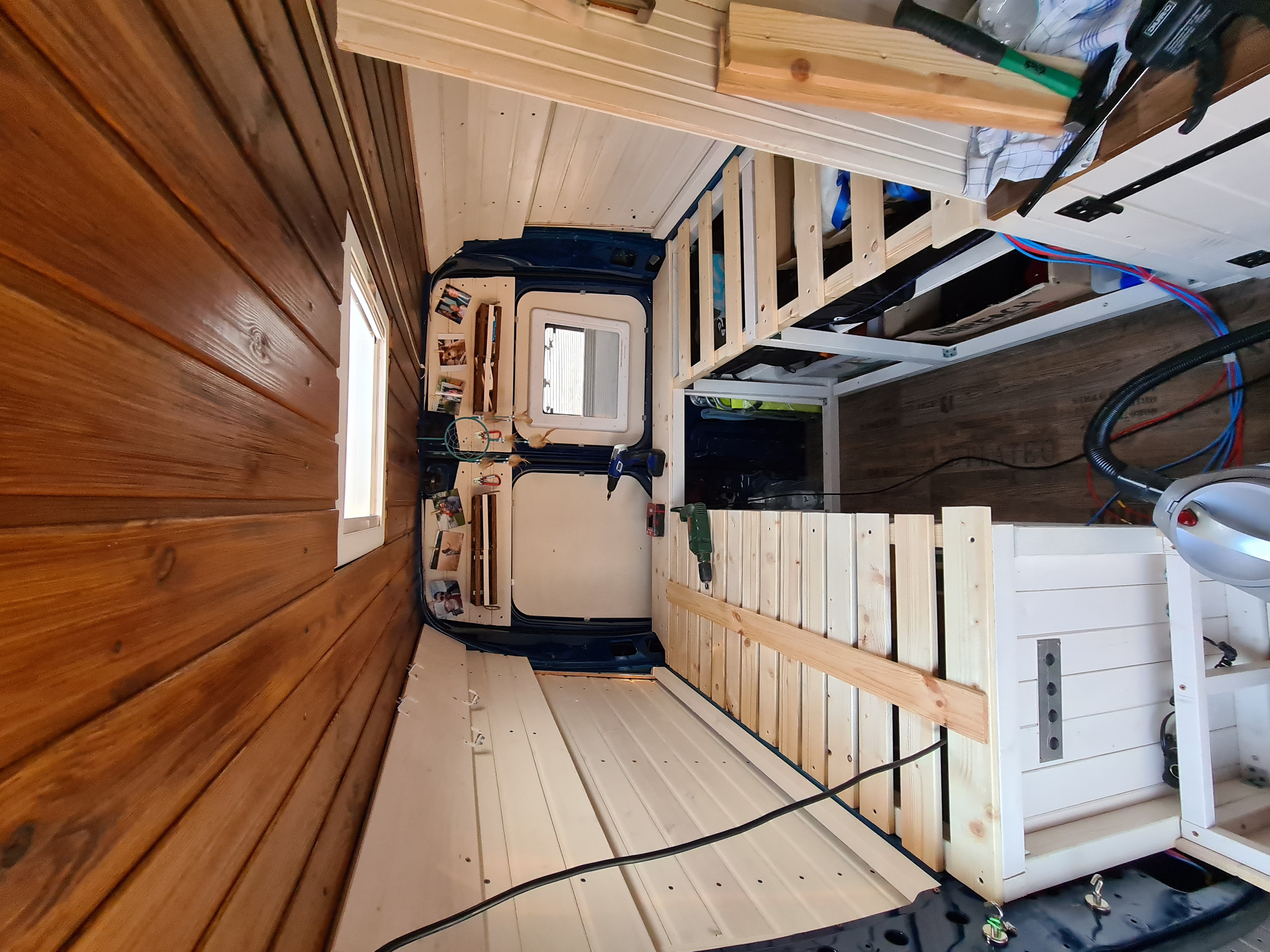 Das Bett wurde dann 2021 nochmal optimiert. Ich habe den Durchgang aufgemacht, damit man das Bett auch mal beiseite tun kann und der Gang begehrbar wird.