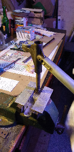 Als nĂ€chstes entfernt ihr die langen Stifte in den Gelenken. Das kann unter UmstĂ€nden etwas schwer gehen, darum spannt sie am besten vorsichtig in einen Schraubstock ein und tackert sie langsam mit einem StĂŒck Holz und einem Hammer heraus.