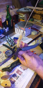 Als nĂ€chstes entfernt ihr die langen Stifte in den Gelenken. Das kann unter UmstĂ€nden etwas schwer gehen, darum spannt sie am besten vorsichtig in einen Schraubstock ein und tackert sie langsam mit einem StĂŒck Holz und einem Hammer heraus.