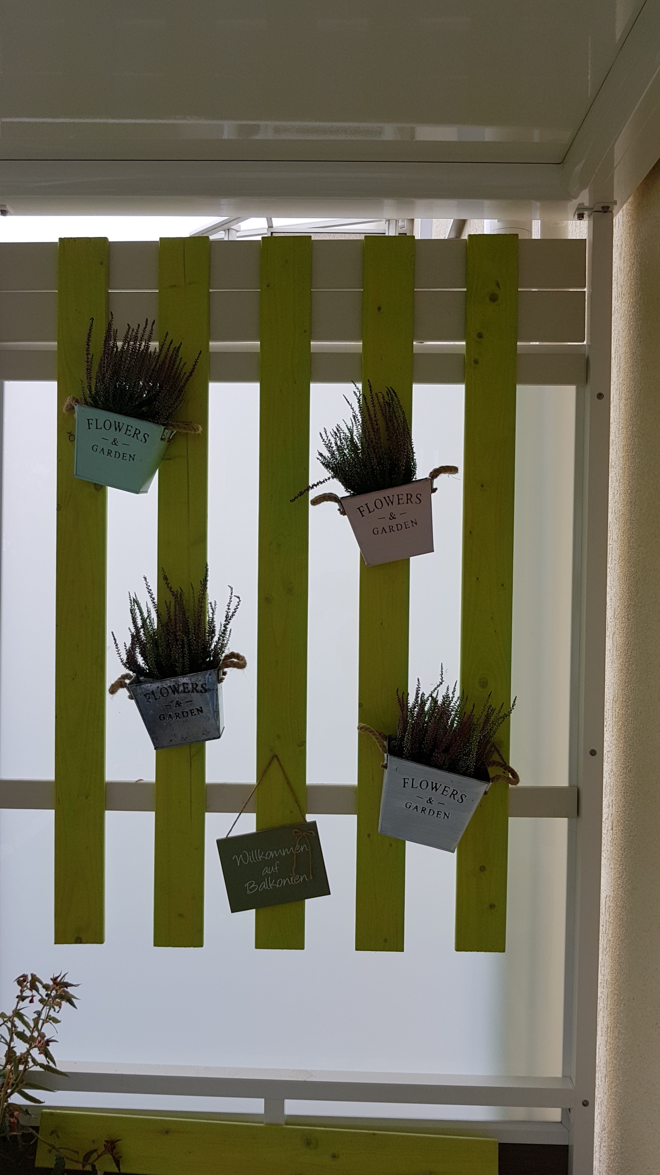 Auch wir wollen uns auf Balkonien entspannen und mal die Seele baumeln lassen, dafĂŒr habe ich eine kleine Holzwand mit BlumenkĂ€sten gebaut.