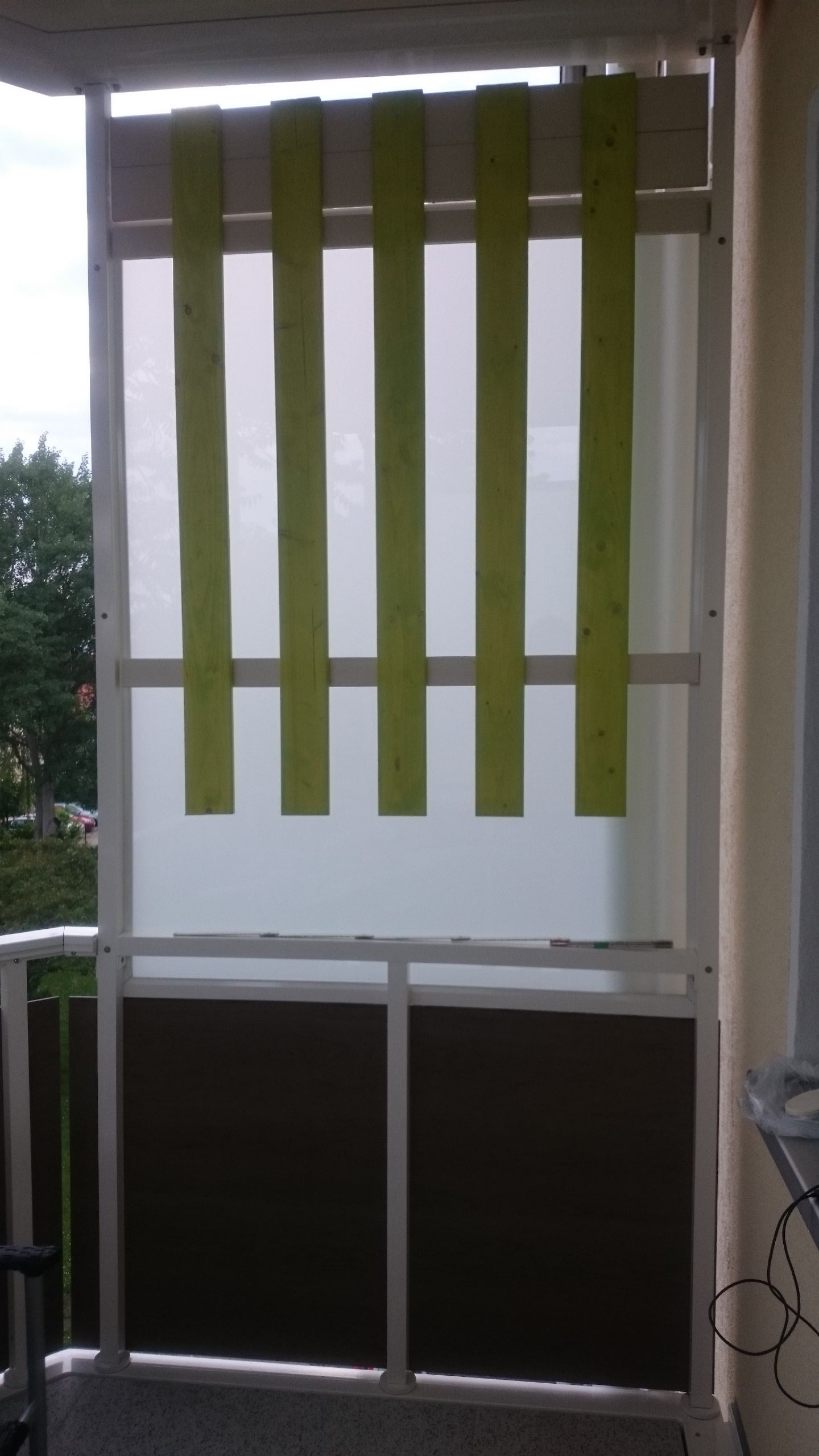 Ăber dem oberen Waagerechten Brett habe ich nachtrĂ€glich nochmals zwei Bretter montiert, diese dienen als zusĂ€tzlicher Regen und Sichtschutz.