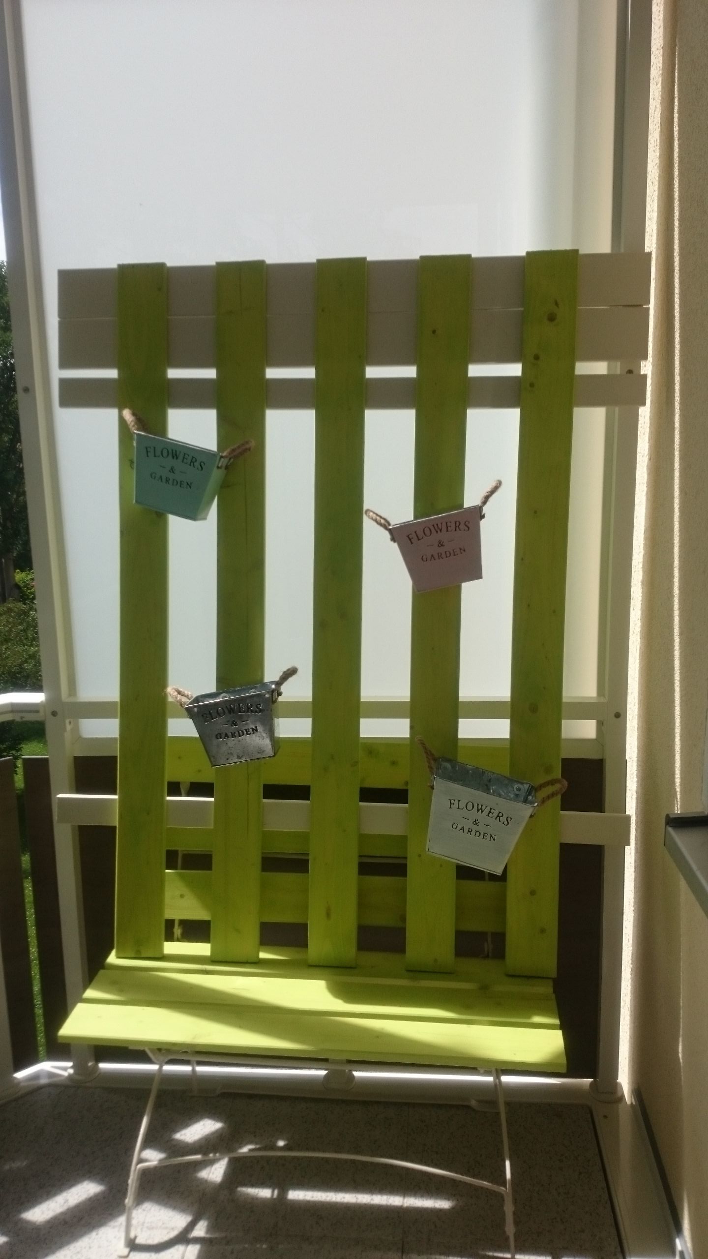 Auch wir wollen uns auf Balkonien entspannen und mal die Seele baumeln lassen, dafĂŒr habe ich eine kleine Holzwand mit BlumenkĂ€sten gebaut.