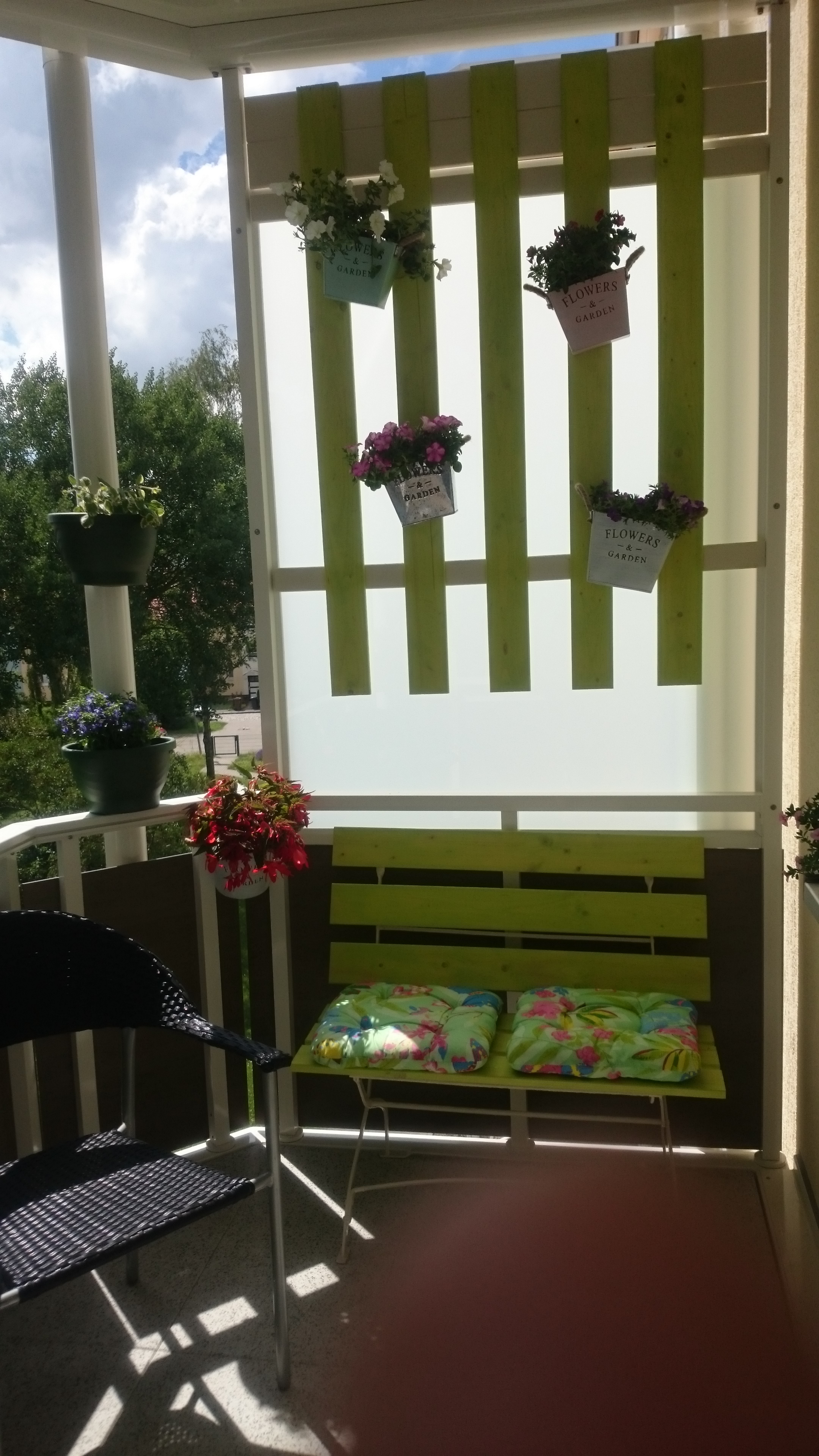 Auch wir wollen uns auf Balkonien entspannen und mal die Seele baumeln lassen, dafĂŒr habe ich eine kleine Holzwand mit BlumenkĂ€sten gebaut.