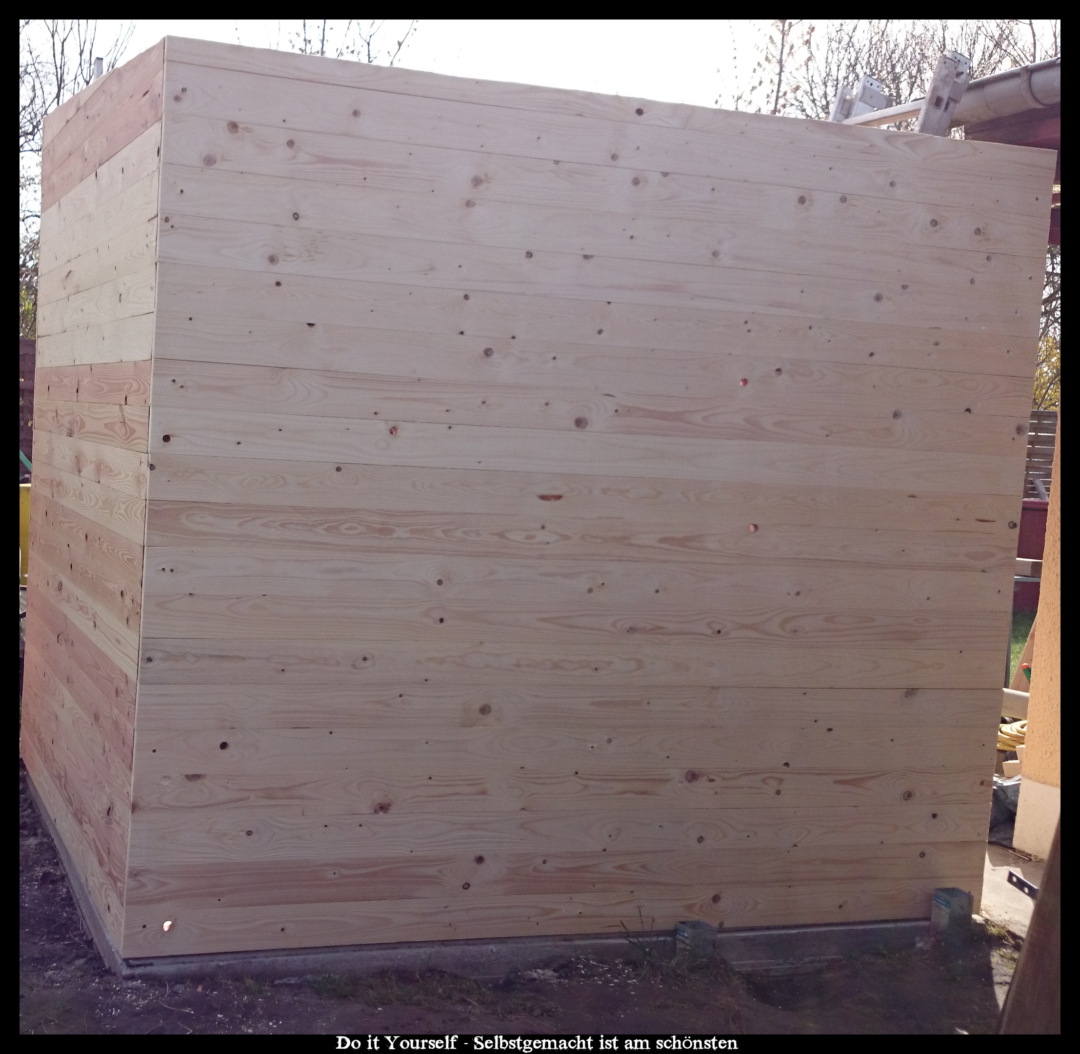 Laut meines ausgeklügelten Planes sollte das Gerätehaus 2 x 2 x 2 m groß werden und inkl. Fundament und Farbe ca. 1000 Euro kosten.
