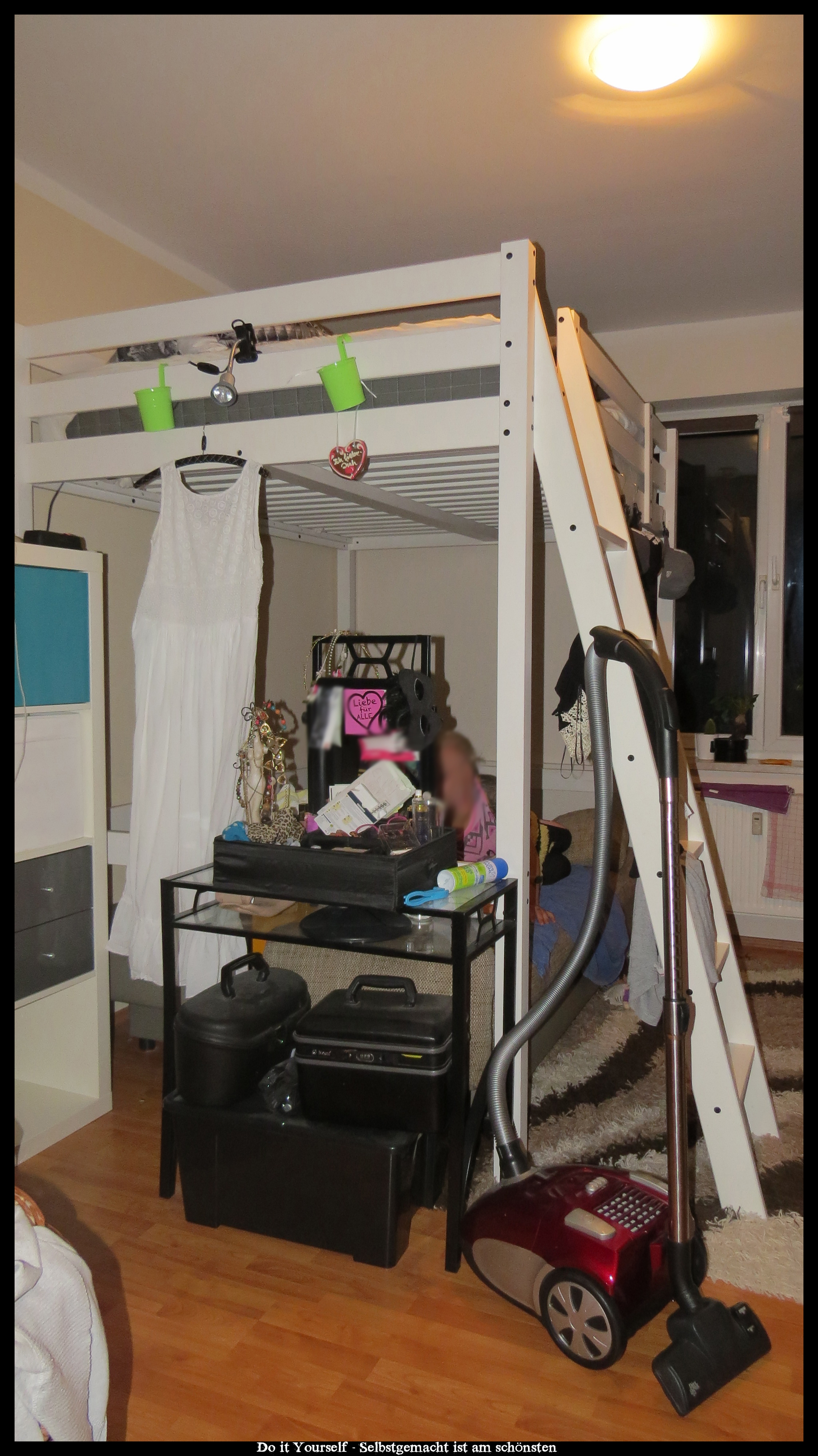 Als ich einem befreundeten Paar davon erzählte, das Ich ein Hochbett mit begehbaren Kleiderschrank für eine Freundin gebaut habe, kam die Frage auf, ob man das auch bei einem bereits bestehendem Hochbett einbauen könnte. Natürlich!