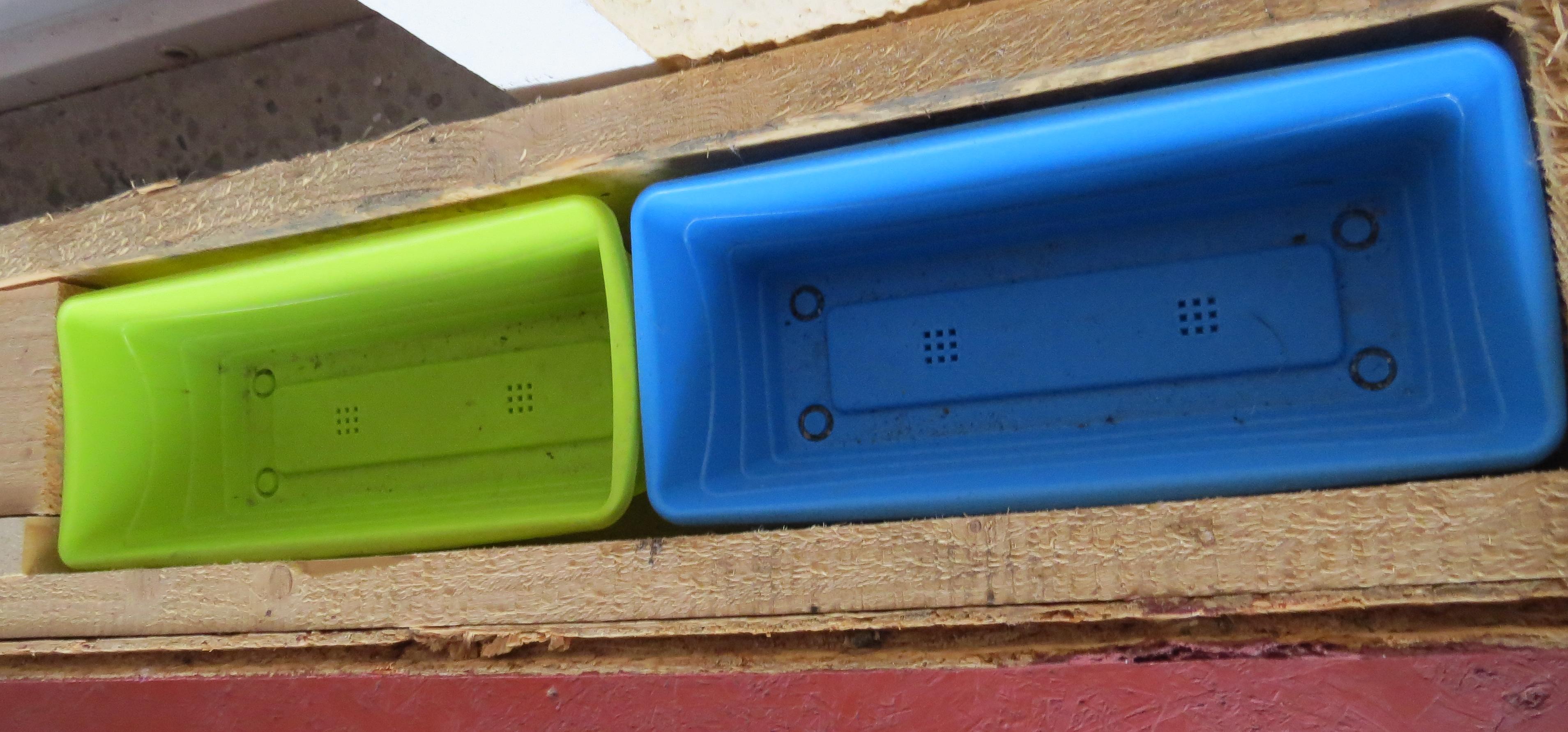 An der Oberseite der Rückwand könnt ihr nun kleine Einlegeböden zurecht schneiden und verschrauben, somit habt ihr viele kleine Ablagemöglichkeiten. Wir haben uns z.B. dafür entschieden, aus`m Tedy kleine Mini-Blumentöpfe zu holen (1 €/Stk.) um darin im Sommer Schnittlauch und Petersilie pflanzen zu können.