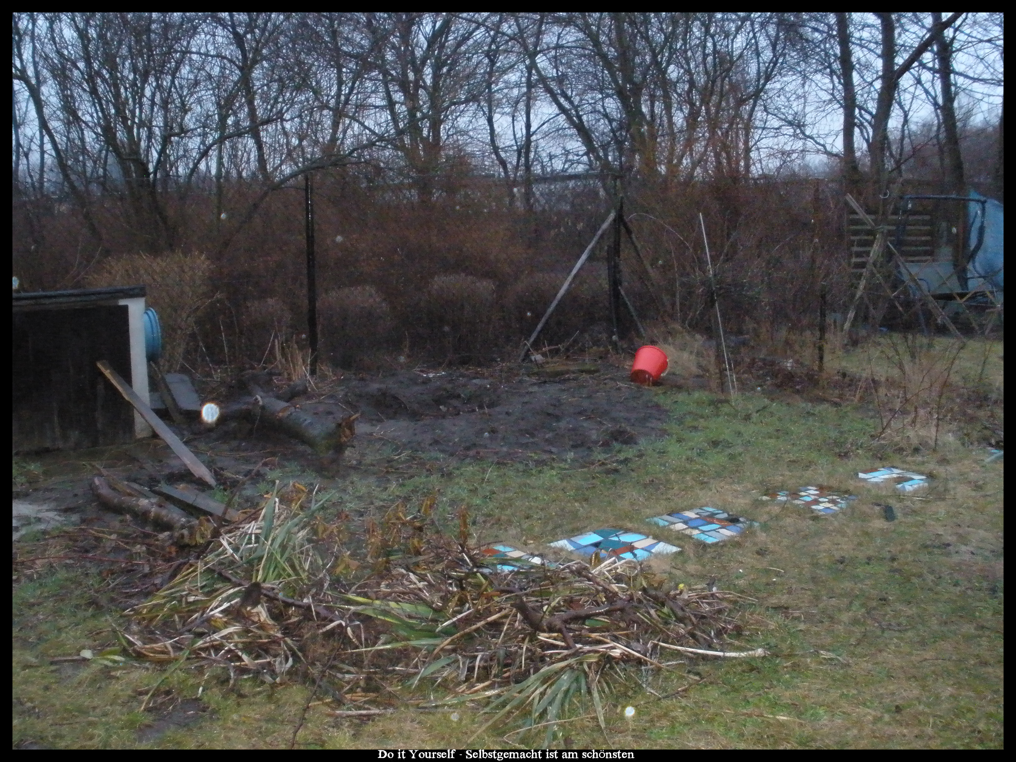 Damit habt ihr dann auch schon alles zusammen was man für den eigenen Strand braucht. Als erstes solltet ihr den Boden bearbeiten, alles was dort wächst oder spitz aus dem Boden schaut muss entfernt werden. Wir haben mit dem Spaten eine ganz dünne Schicht abgetragen.