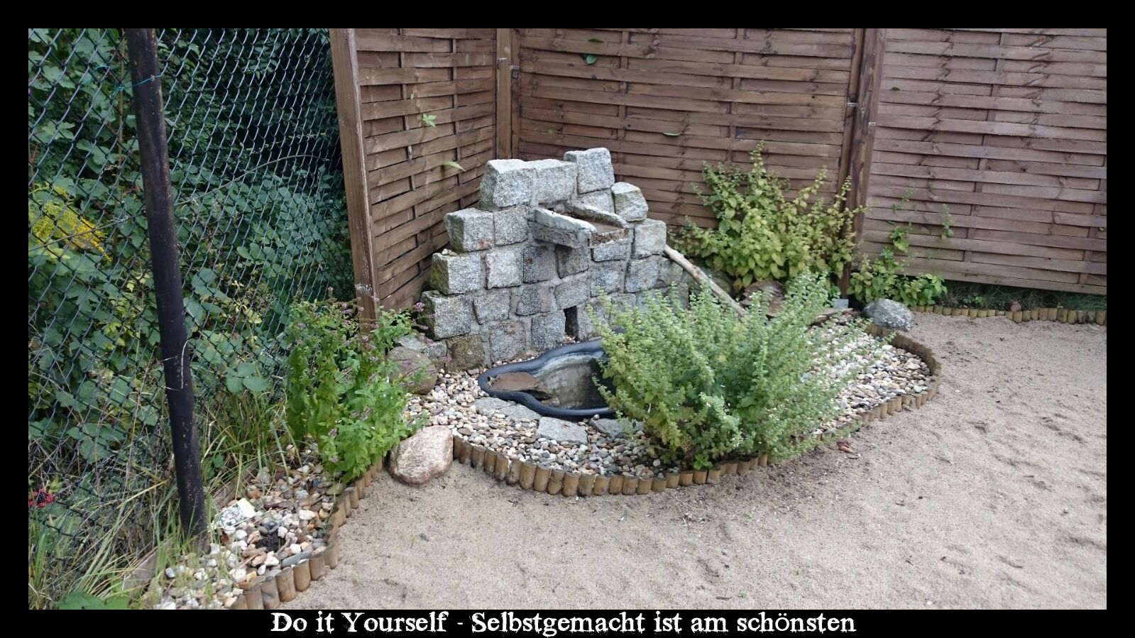 Aus dem Baumarkt habe ich mir dann eine kleine Teichpumpe gekauft und diese dann ins Becken gestellt und den Schlauch in die hintere Kammer gesteckt. Strom an und ahhh, welch wohltuender Klang :).