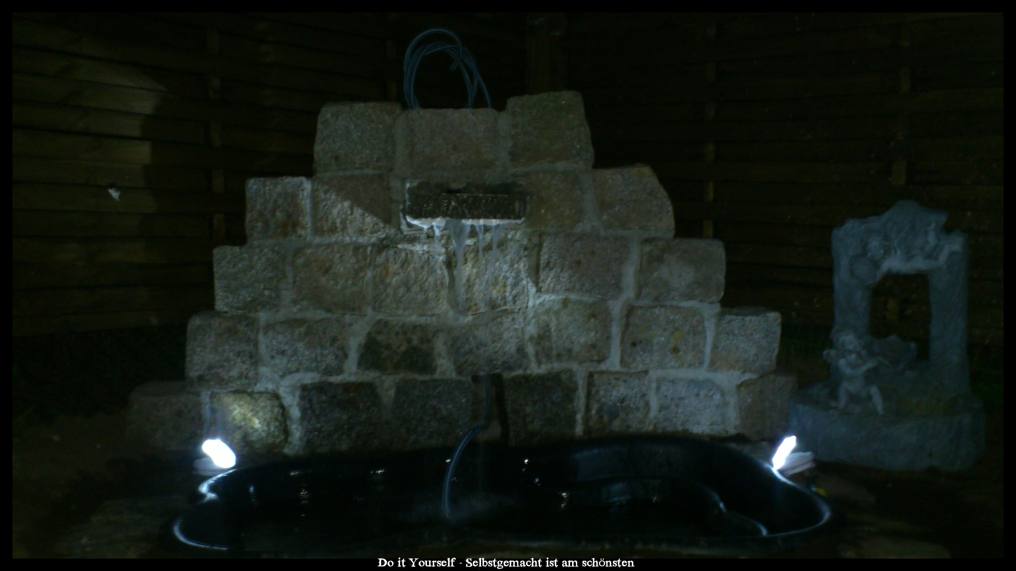 Aus dem Baumarkt habe ich mir dann eine kleine Teichpumpe gekauft und diese dann ins Becken gestellt und den Schlauch in die hintere Kammer gesteckt. Strom an und ahhh, welch wohltuender Klang :).