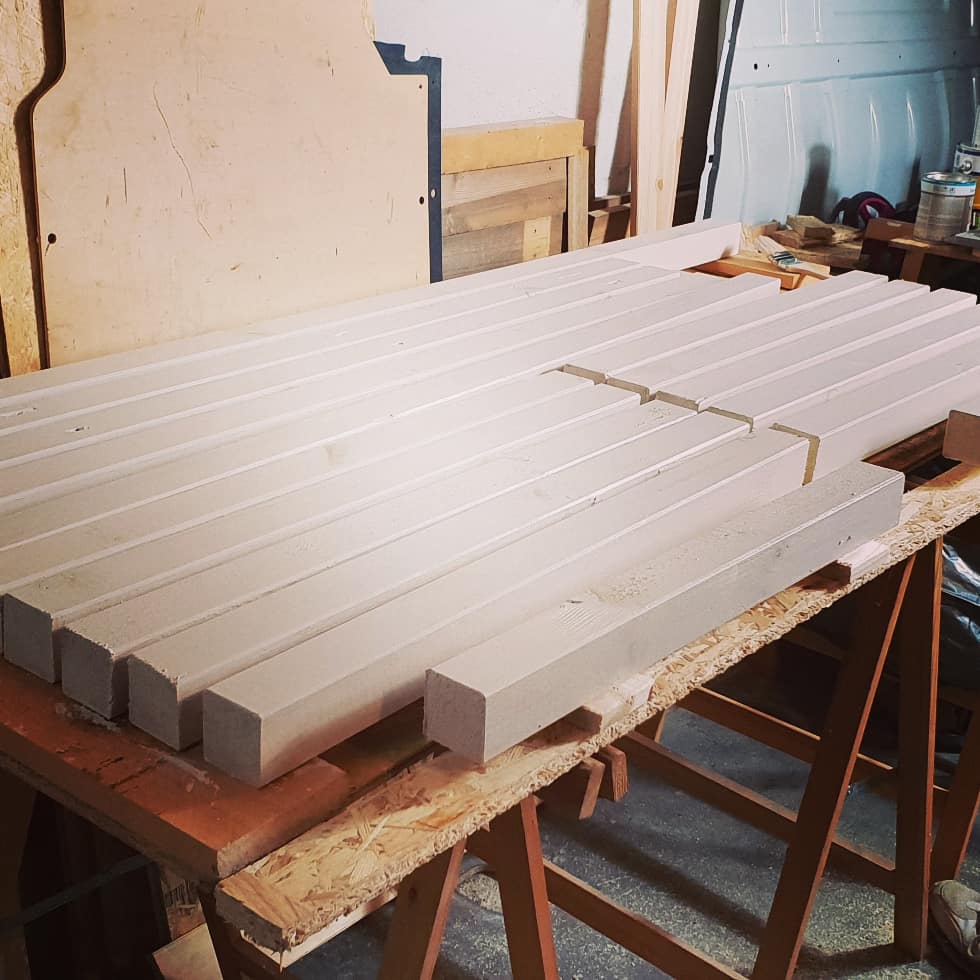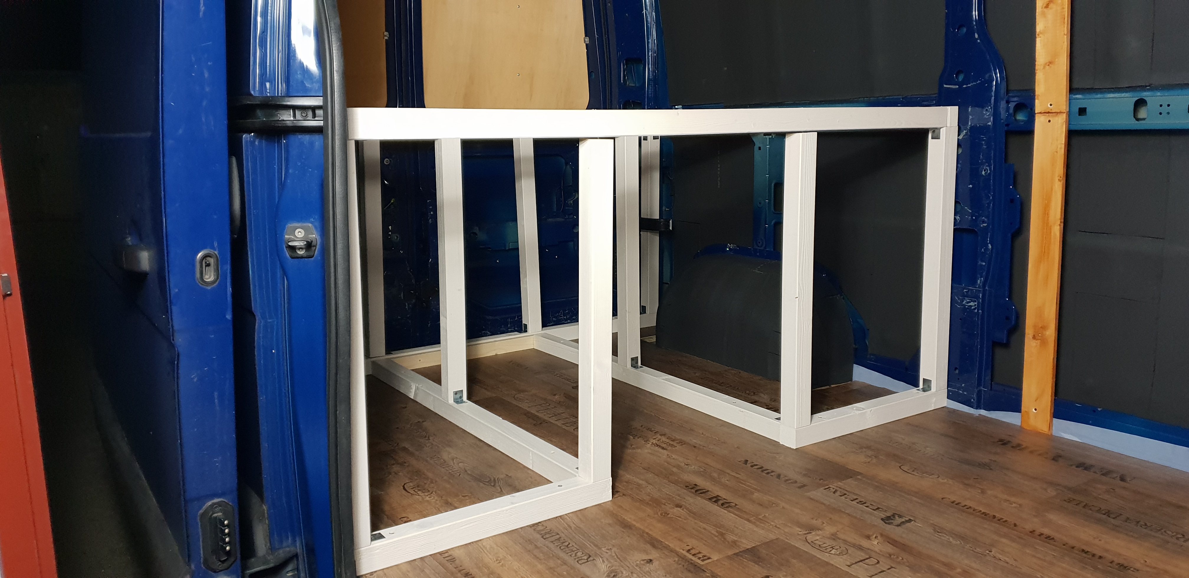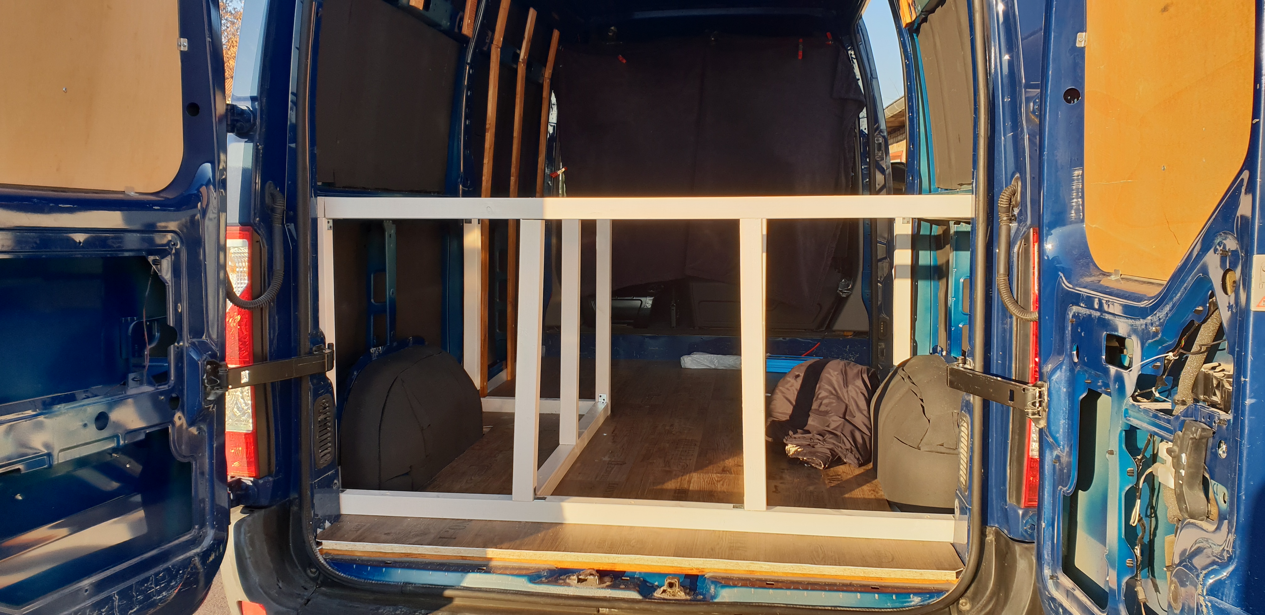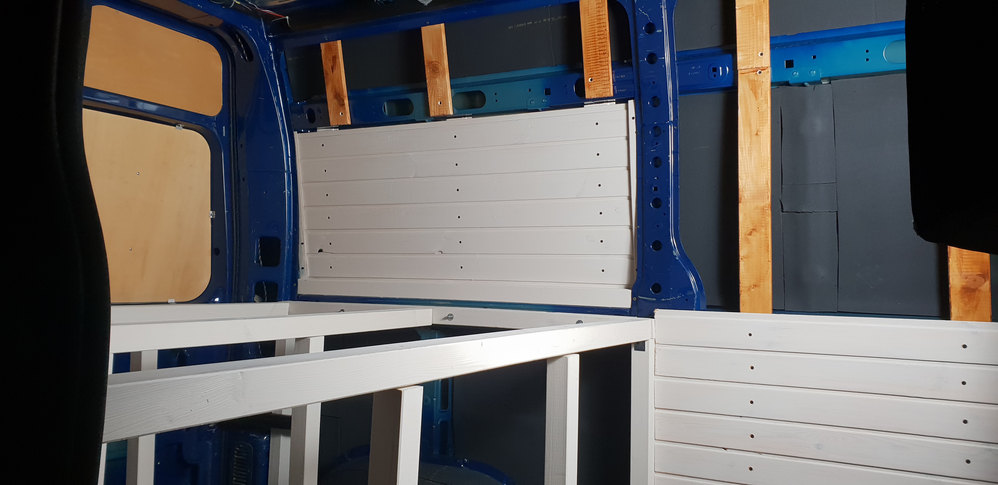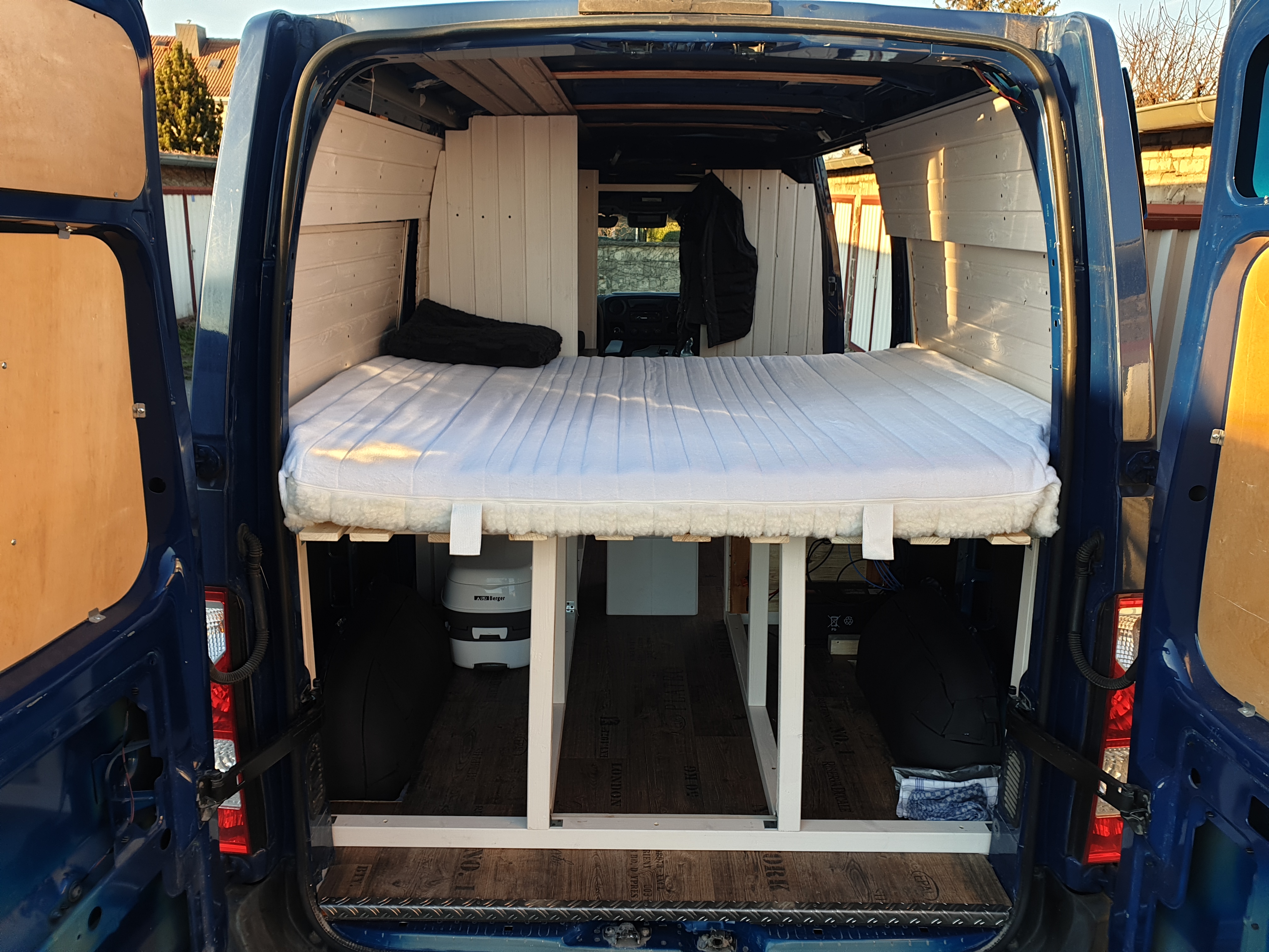 Das Bett wurde dann 2021 nochmal optimiert. Ich habe den Durchgang aufgemacht, damit man das Bett auch mal beiseite tun kann und der Gang begehrbar wird.